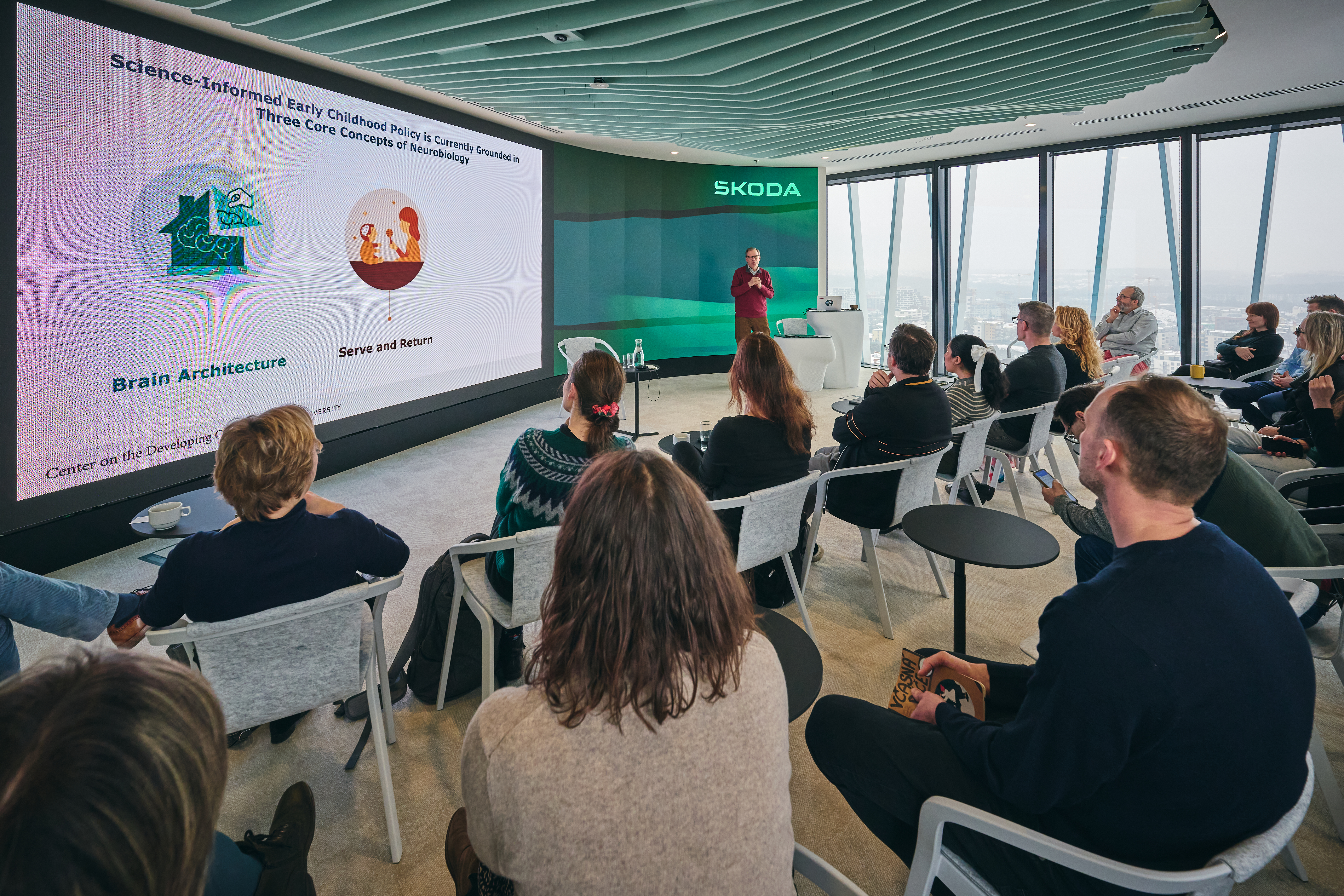 Aby diskuze nezůstala jen na pódiu, hned následující den jsme společně s Aspen Institute Central Europe a Platforma pro včasnou péči uspořádali praktický workshop s Jamesem Cairnsem z Center on the Developing Child at Harvard University.